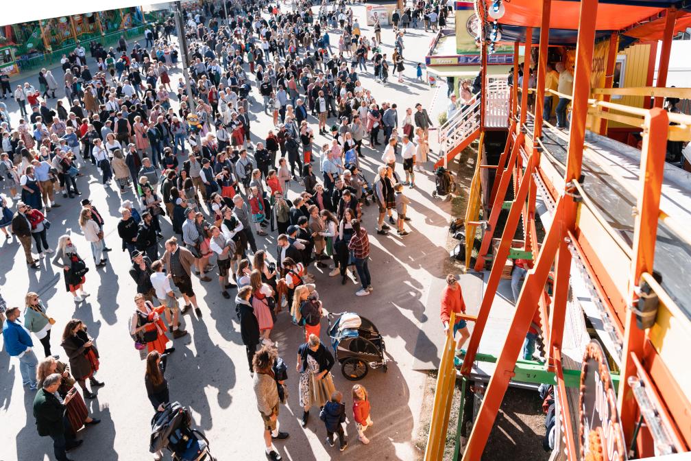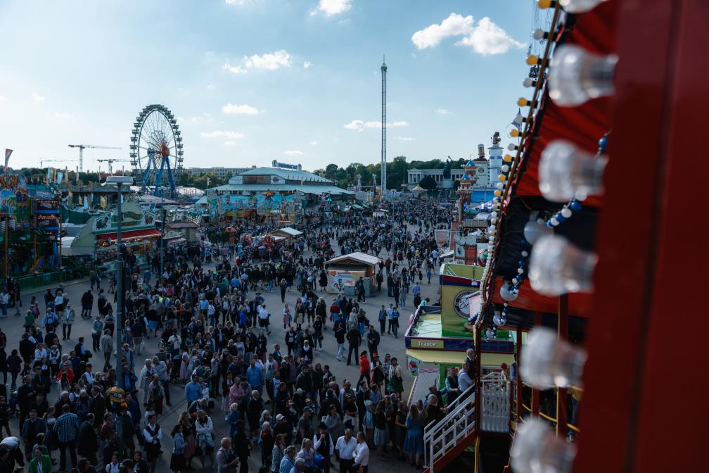 Beim Toboggan macht das Zuschauen mindestens so viel Spaß wie das Mitfahren! Auf einem Förderband muss man nämlich mehr oder weniger elegant acht Meter nach oben gleiten, bevor man die Wendeltreppe hinaufsteigt und auf Kokus-Teppichen die Holzrutsche hinuntersaust. Was einfach klingt, ist oft unfreiwillig komisch — vor allem für die Zuschauer. Besonders groß ist die Gaudi ab dem späten Nachmittag, wenn die, die’s versuchen, vorher schon die ein oder andere Maß zu sich genommen haben. Ein echter Klassiker zum Nulltarif, der noch dazu auf dem Weg zum Ausgang Richtung Goetheplatz liegt, wo’s am Abend etwas gemütlicher zugeht als an der U-Bahn Theresienwiese.