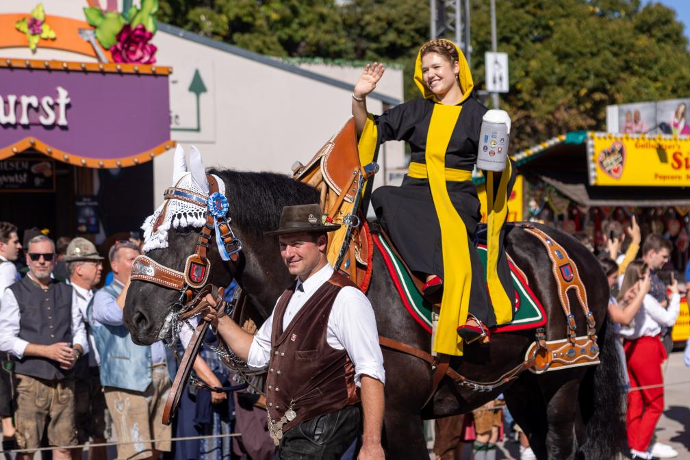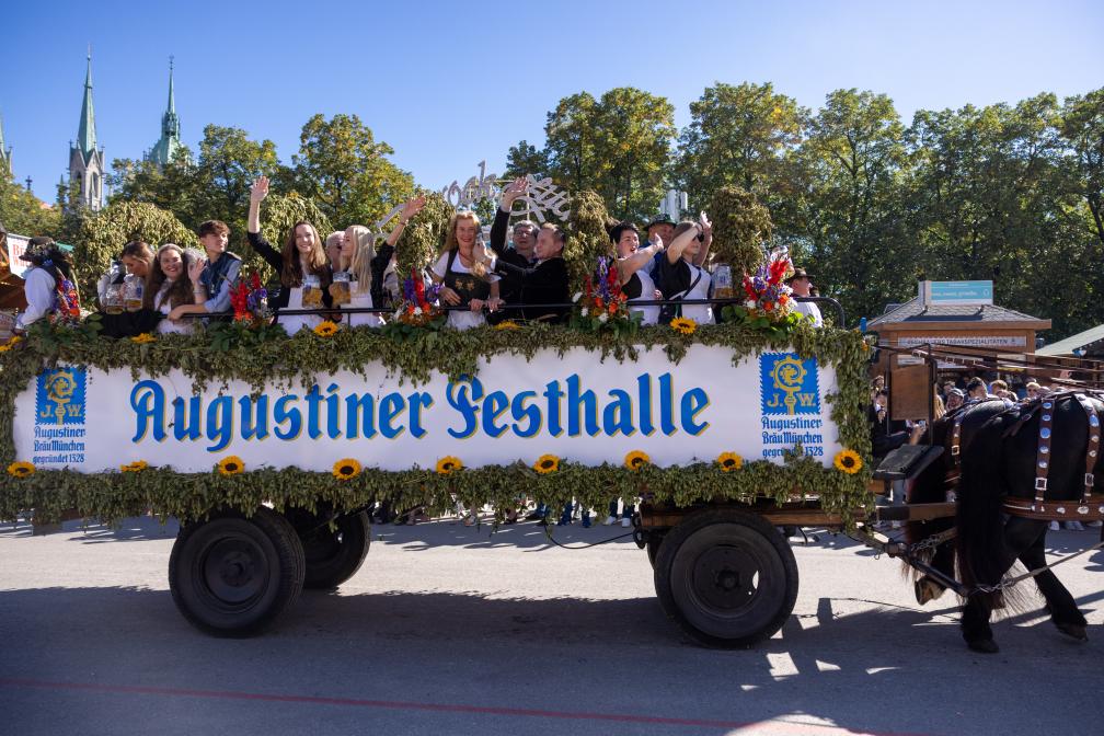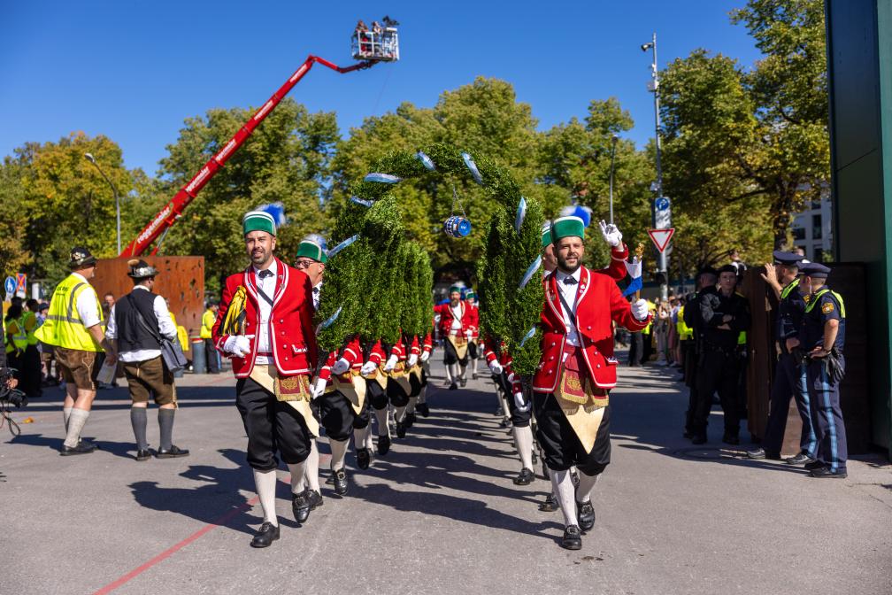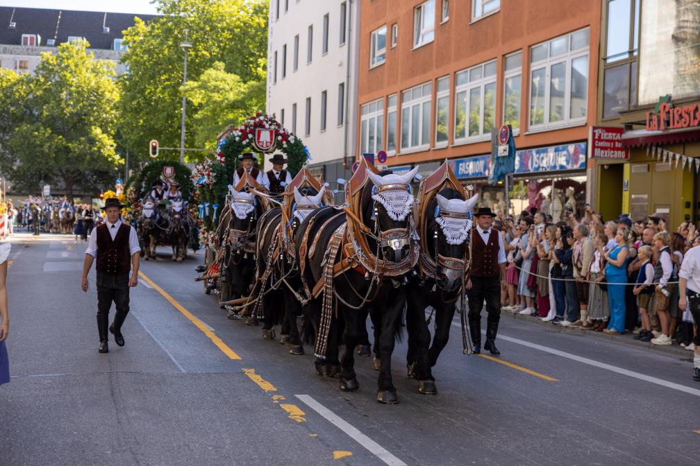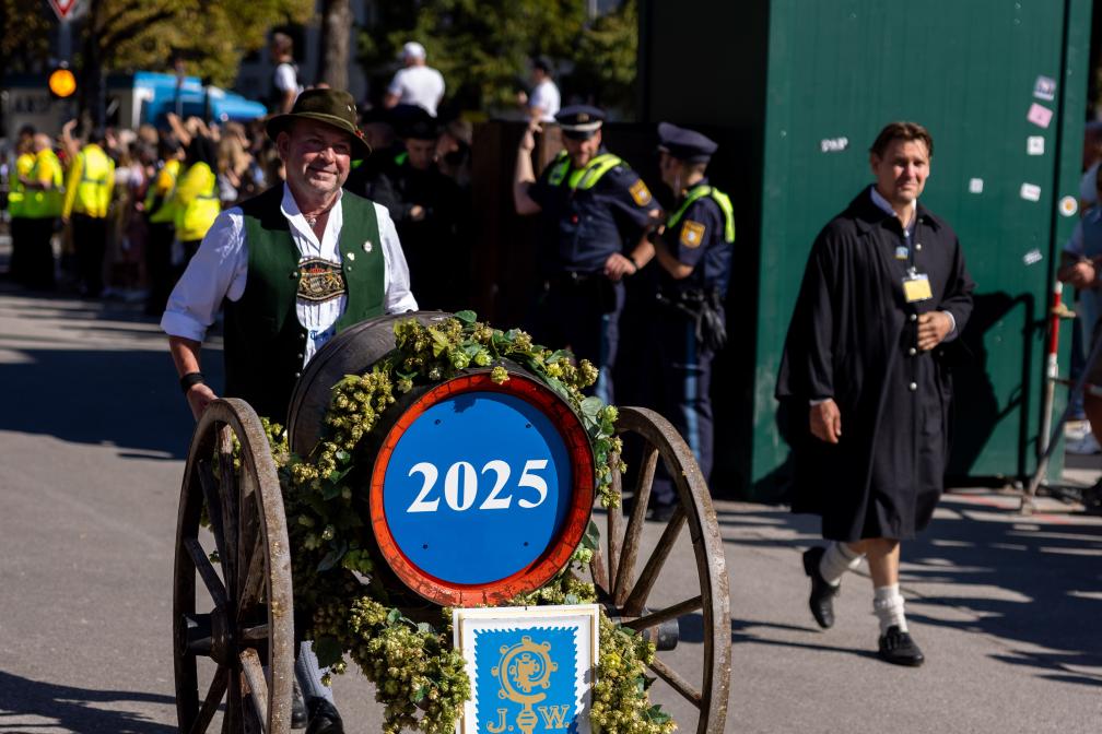 The march usually starts from corner Josephspitalstraße behind Sendlinger Tor, moves on to Sonnenstraße and turns left into Schwanthaler Straße. Here it goes straight on to Bavariaring, from where it goes directly onto Wirtsbudenstraße and into the respective marquees. In 2025, a total of about 1.000 participants took part in the festive procession. While the Oktoberfest guests were eagerly awaiting the kick-off in the tents, selfies with the floats and horse-drawn carriages were diligently taken outside. At 12 o'clock on the dot, the Lord Mayor opened the Oktoberfest in the Schottenhamel Festhalle with the traditional "O'zapft is".