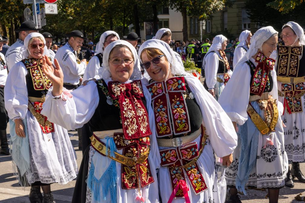 Die bessere Frage wäre: Wer ist nicht dabei beim Trachtenumzug zur Festwiese? An die 9.500 Mitwirkende folgen jedes Jahr dem Lockruf aus München und ziehen in rund 50 Zugnummern gemeinsam feierlich durch die Stadt. Nicht nur bayerische Trachtler nehmen am Trachten- und Schützenzug teil: Trachtenvereine, Sport- und Gebirgsschützen, Spielmannszüge und Musikkapellen aus der ganzen Welt können sich beim Festring München e.V. für den Umzug anmelden.