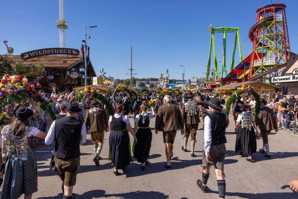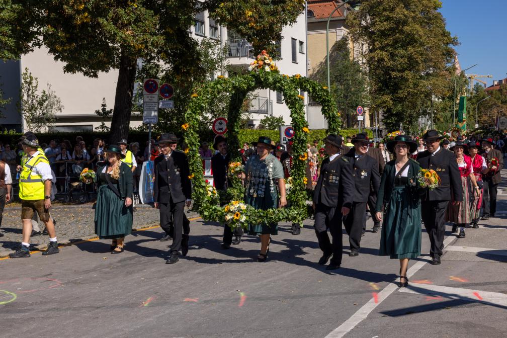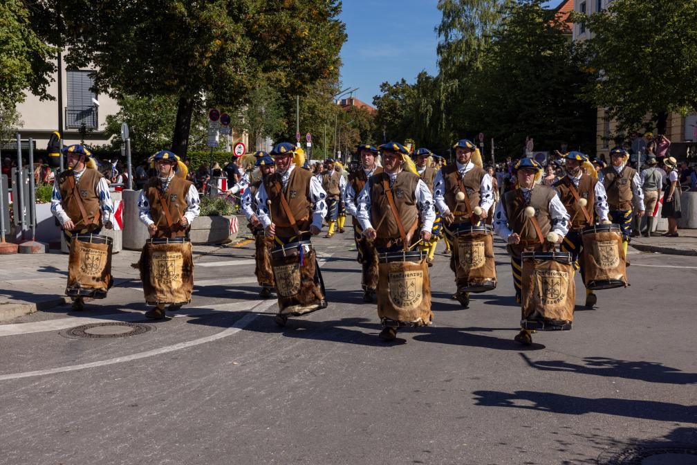Die bessere Frage wäre: Wer ist nicht dabei beim Trachtenumzug zur Festwiese? An die 9.500 Mitwirkende folgen jedes Jahr dem Lockruf aus München und ziehen in rund 50 Zugnummern gemeinsam feierlich durch die Stadt. Nicht nur bayerische Trachtler nehmen am Trachten- und Schützenzug teil: Trachtenvereine, Sport- und Gebirgsschützen, Spielmannszüge und Musikkapellen aus der ganzen Welt können sich beim Festring München e.V. für den Umzug anmelden.