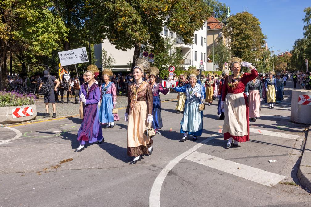 Der Trachten- und Schützenzug ist immer ein äußerst farbenfrohes Event, historische Dirndl und Lederhosen gibt es hier ebenso zu bewundern, wie etwa die Mode der Biedermeierzeit und sogar Ritterrüstungen. Die Teilnehmenden kommen dabei nicht nur aus Bayern, sondern aus ganz Europa. Dazwischen dürfen die prachtvoll geschmückten Wagen der sechs Münchner Brauereien nicht fehlen und natürlich sind auch tausende bayerische Sportschützen und die bayerischen Gebirgsschützen mit dabei.